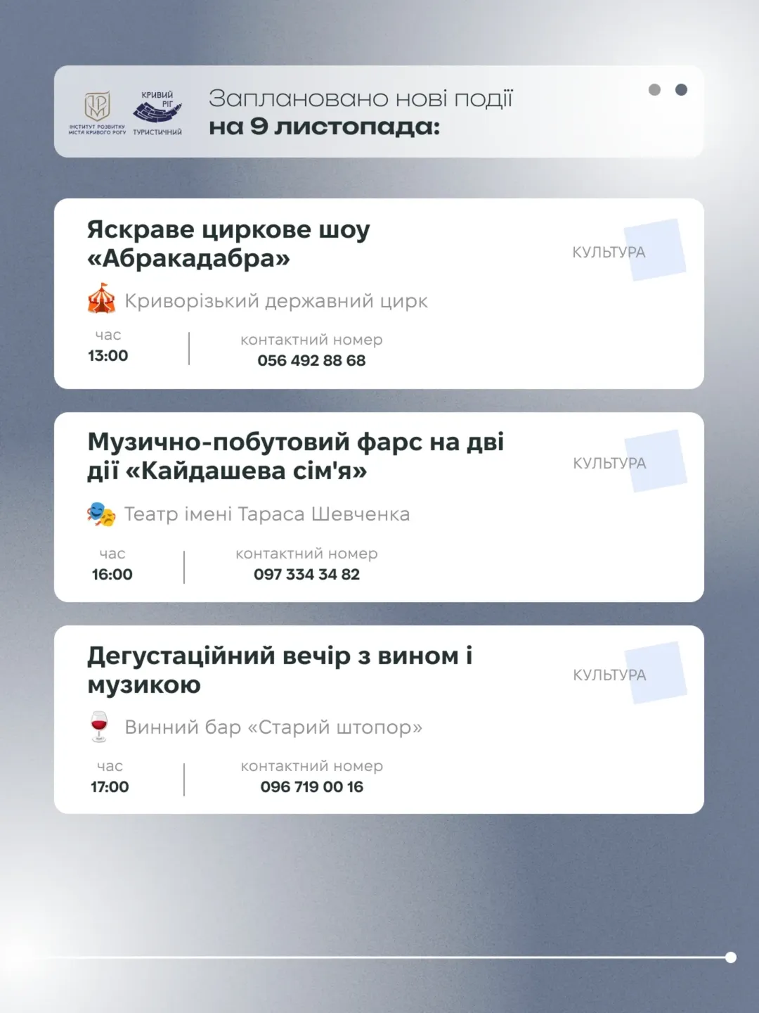 🎤 Жива енергія: концерти, театр - для душі й настрою.