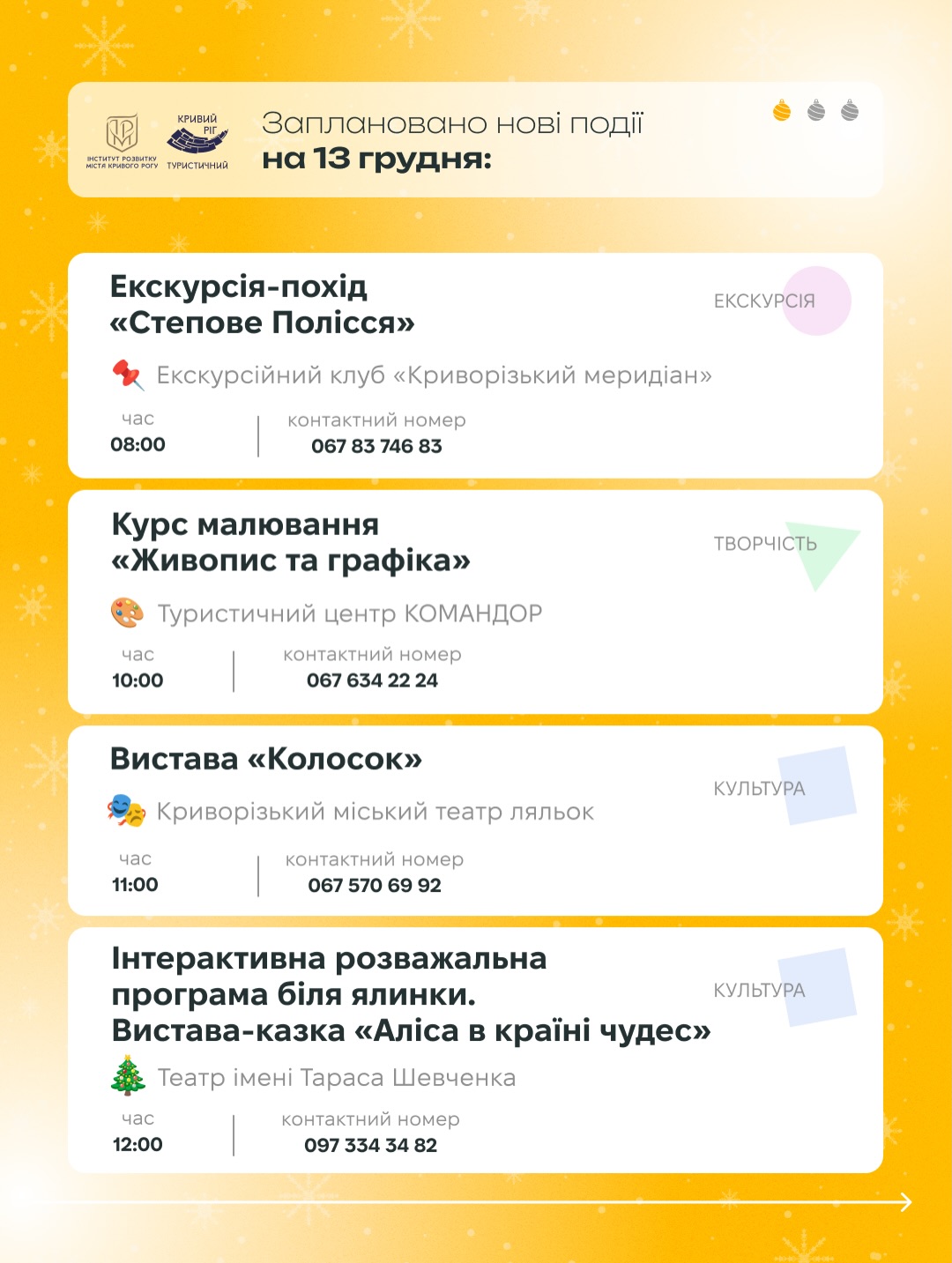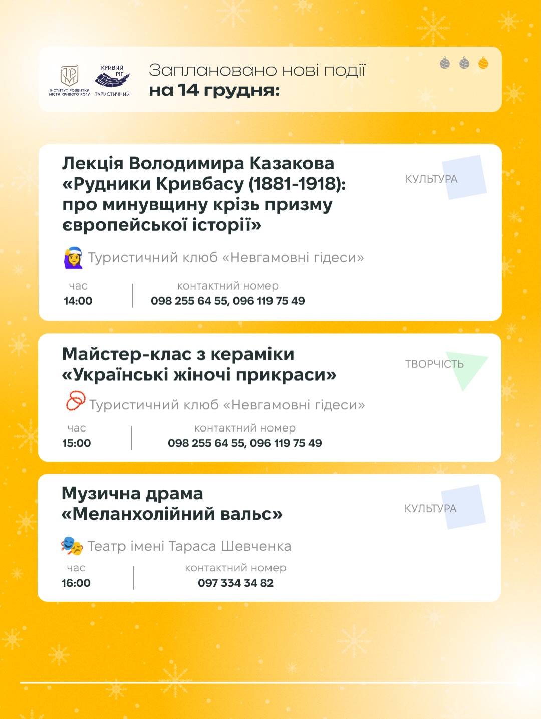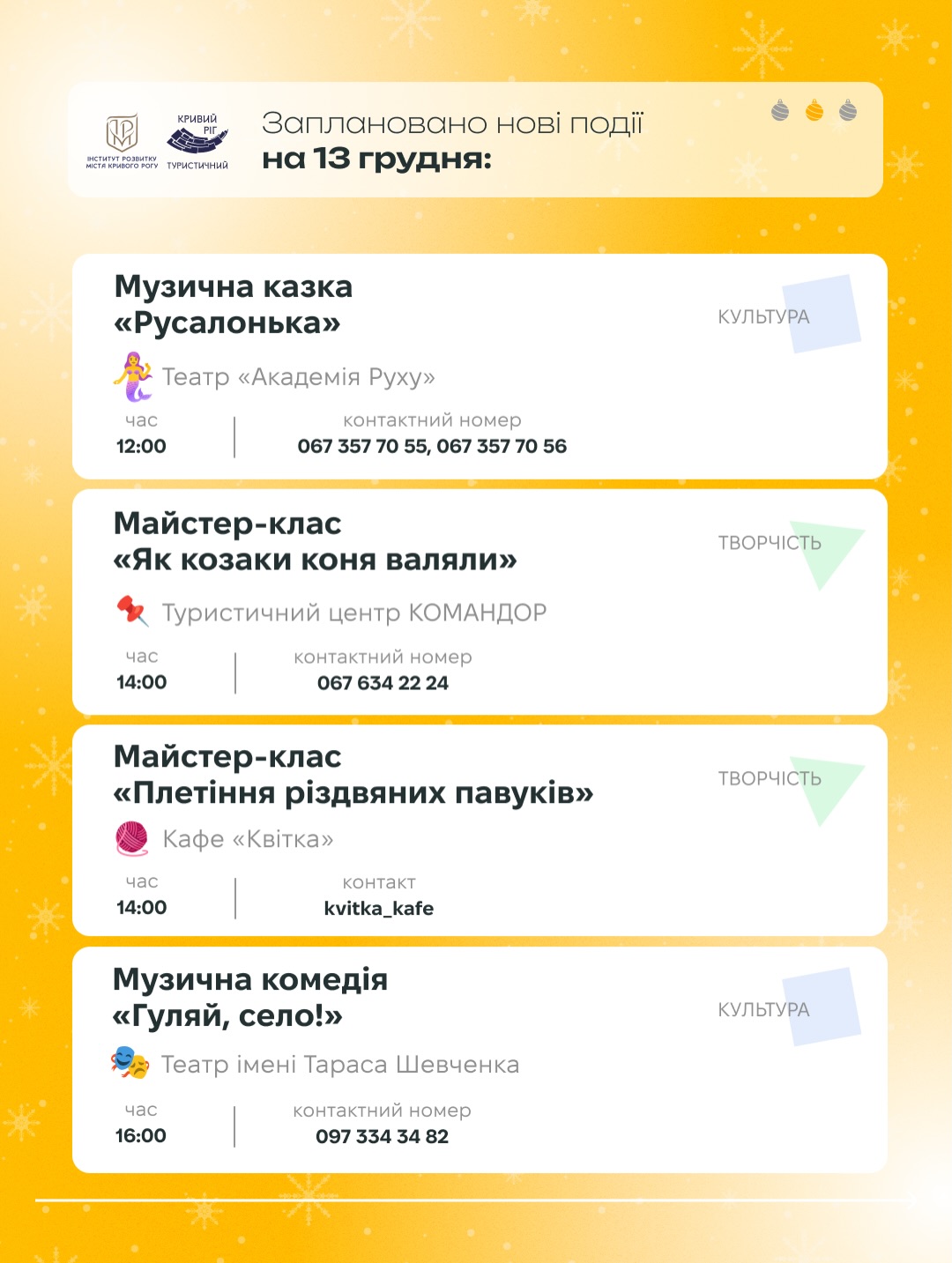 🎨 майстер-класи та екскурсії - створити тепло своїми руками та відкрити нове;