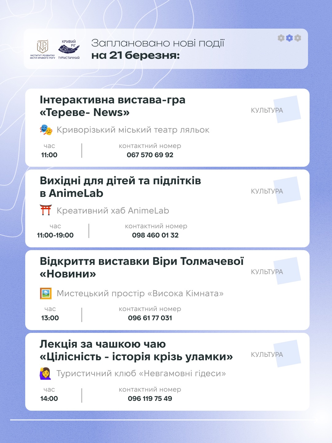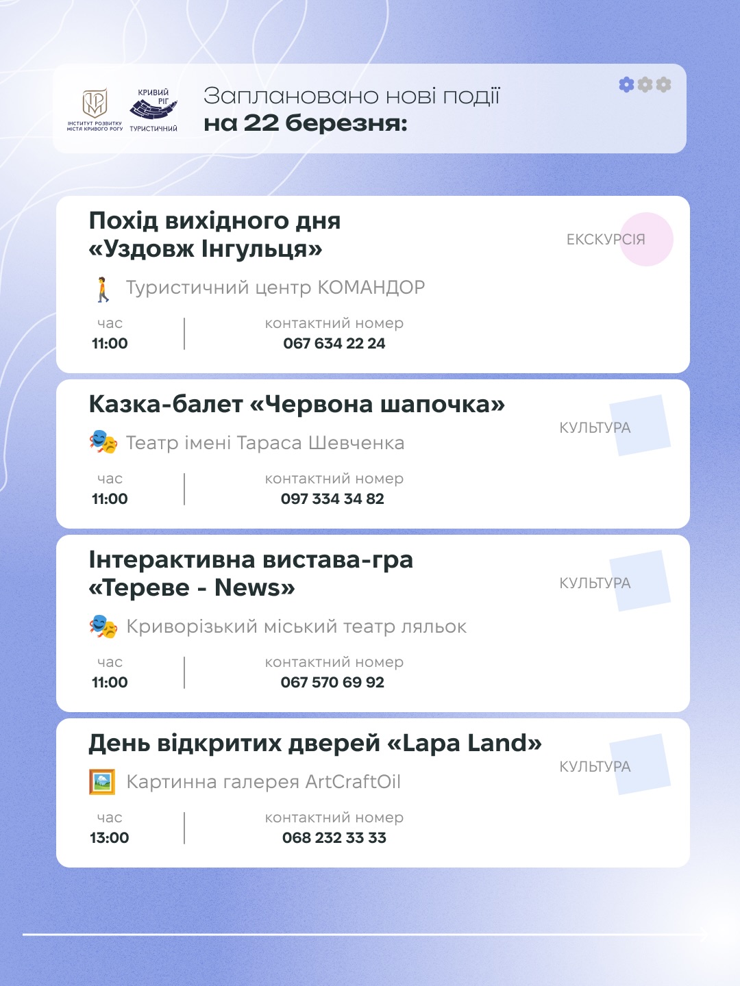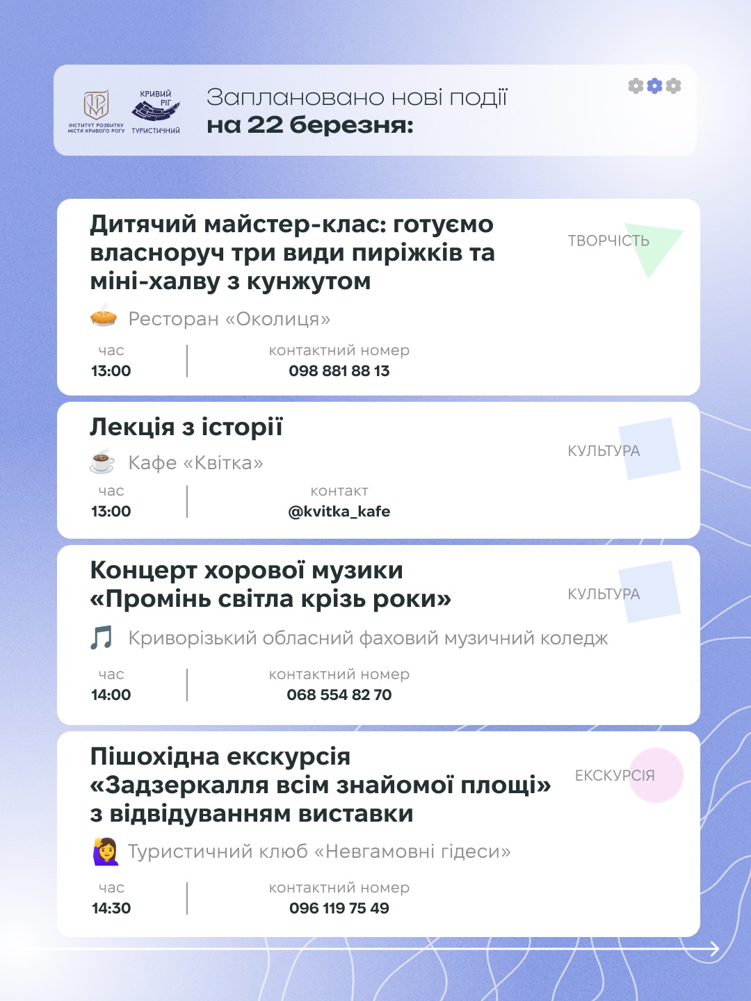 Кривий Ріг чекає - зі своїми вулицями, людьми і атмосферою, яка кожного разу відчувається по-новому. Тож просто обирайте свій ритм і насолоджуйтесь цими днями.