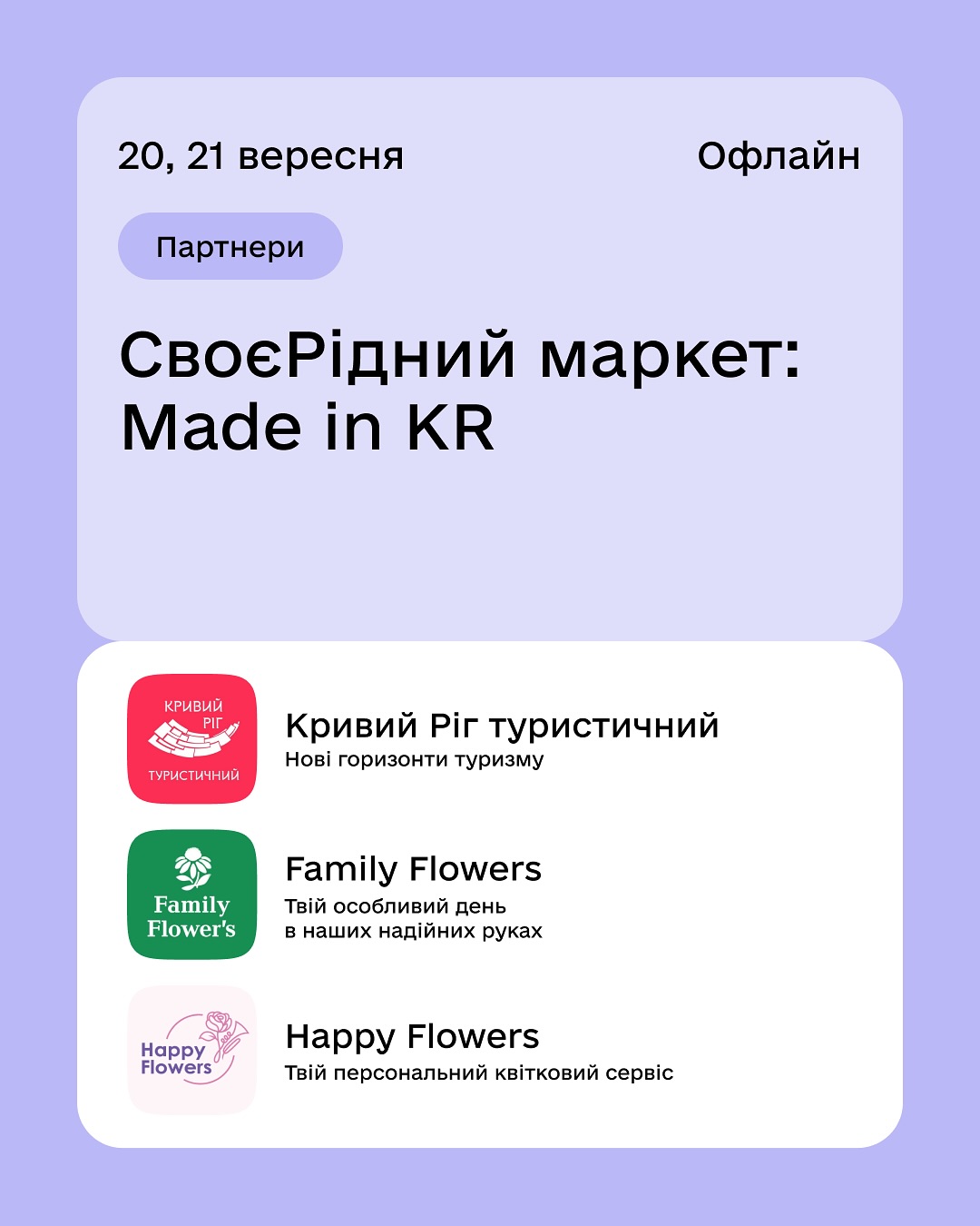 💜 Разом із партнерами ми створюємо маркет, де є все: від ароматної кави й смачних десертів до квіткових емоцій, туристичних відкриттів і приємних сюрпризів.