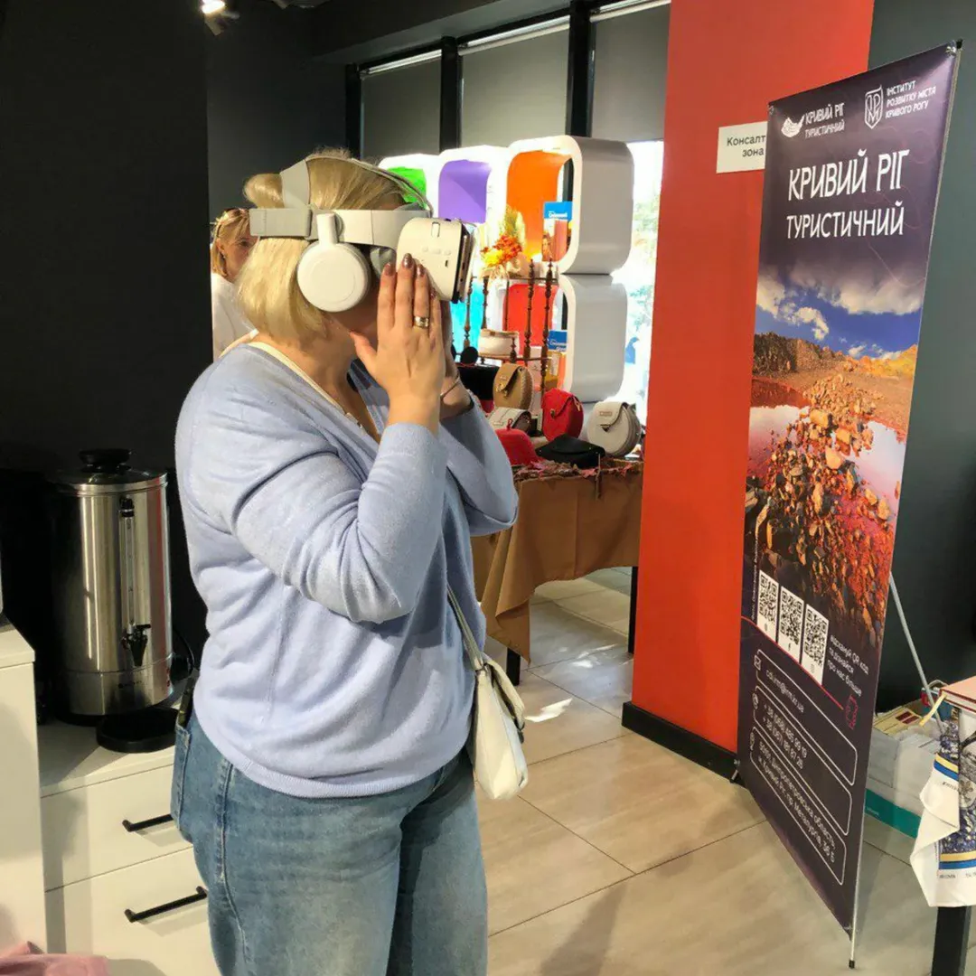 Гості знайомилися з промо-продукцією, новими маршрутами, планами та найближчими подіями до Всесвітнього дня туризму. Особливою фішкою стали VR-окуляри, що дозволили віртуально спуститися в шахту, промчати на вело байку відвалами, поплавати на байдарках Інгульцем чи спробувати скелелазіння на Червоному мості!🪂