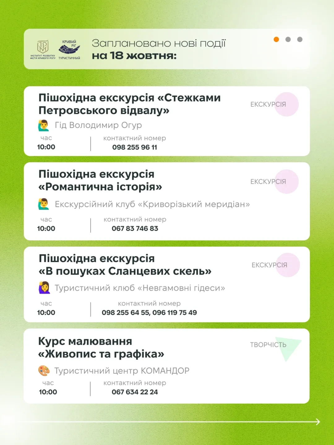 🏞 Осінні мандри - пішохідні екскурсії мальовничими відвалами Кривого Рогу та природоохоронними територіями, де осінні пейзажі створюють справжні шедеври.