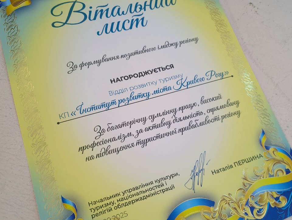 💚❤️ Приємним сюрпризом було нагородження вітальними листами за успіхи у розбудові туристичної галузі регіону представників громад, в тому числі відділ розвитку туризму Інституту розвитку міста Кривого Рогу.
